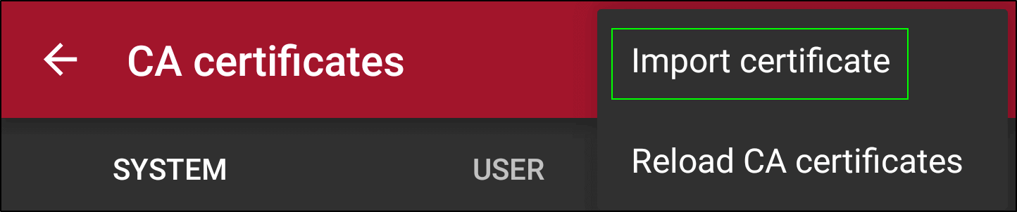 - In the next screen, select the three vertical dots again. Click “Import Certificate”.